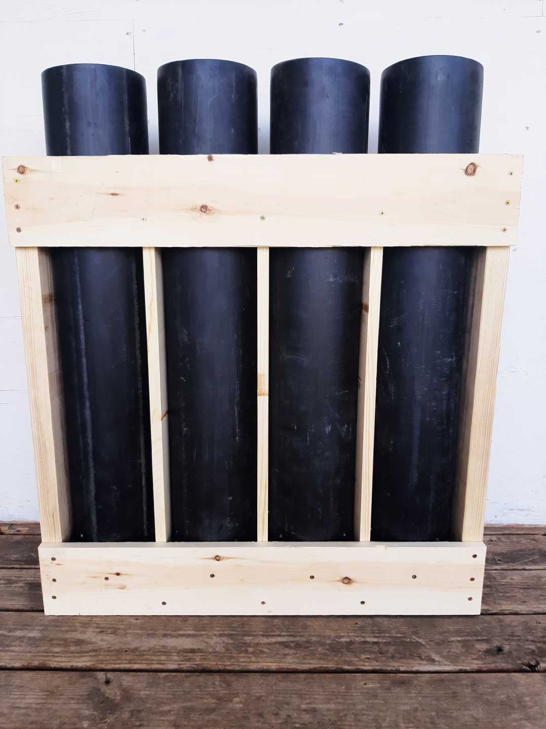 / 6″ rack with 4 tubes 36″ long. 3/4″ divider between each tube